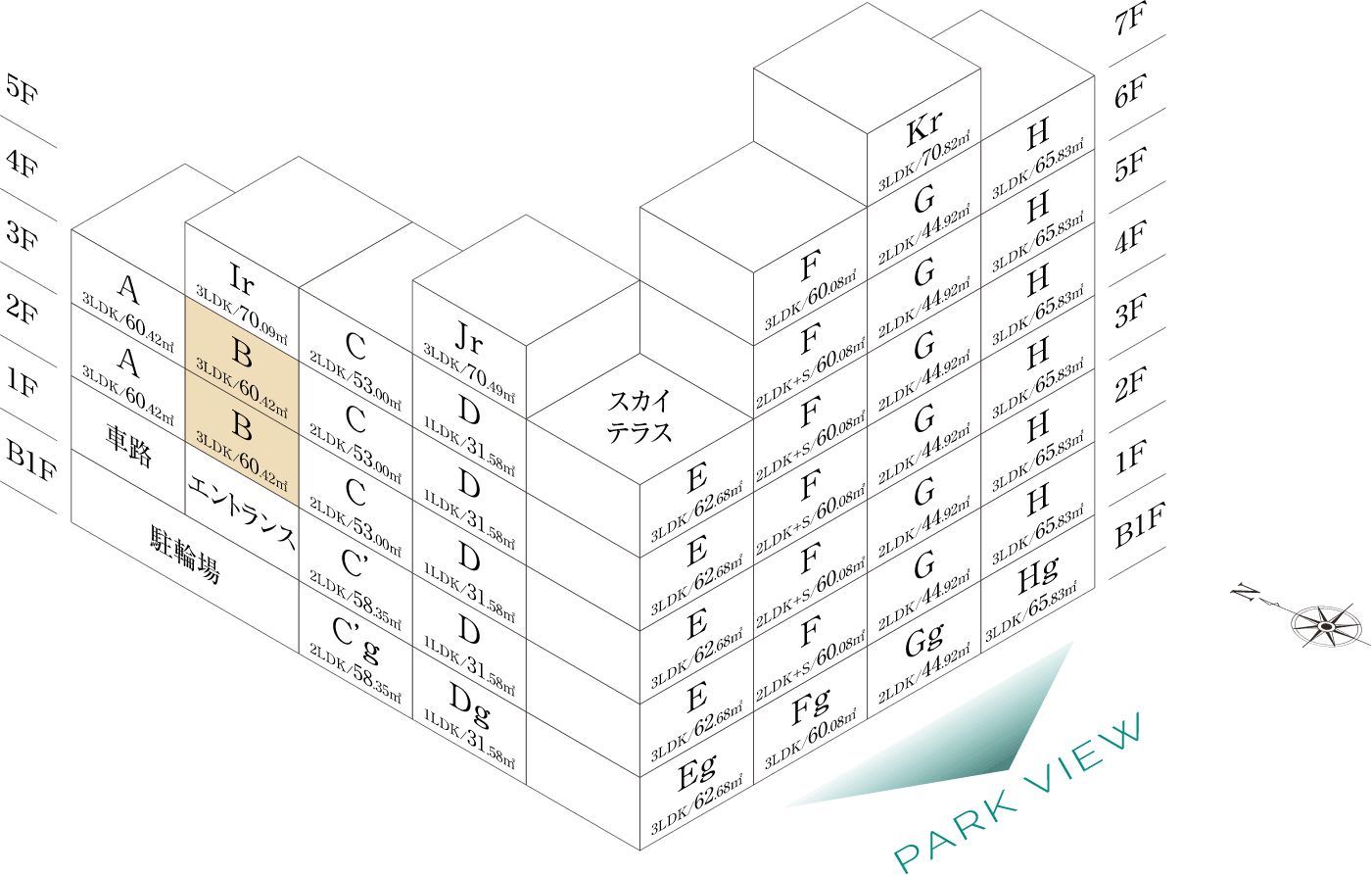 専有面積60.42㎡ (約18.27坪)