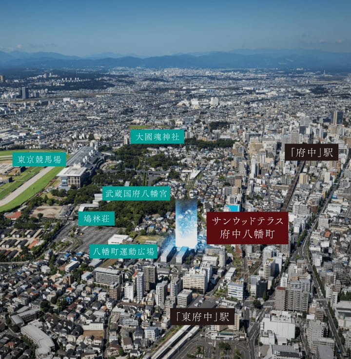 「東府中」駅を中心とする商業地域の利便を使いこなしつつ、末永く快適な暮らしを送ることができます。