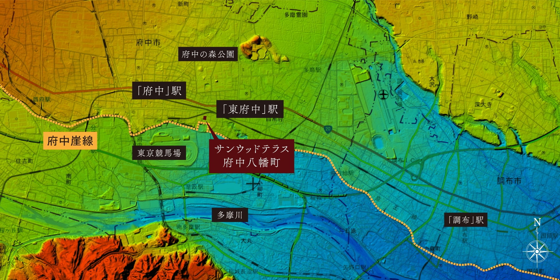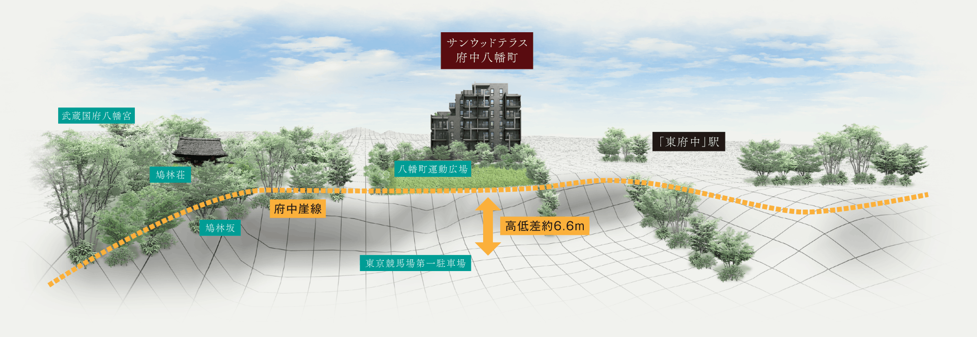 サンウッドテラス府中八幡町はそんな府中崖線の上部に位置するポジション。