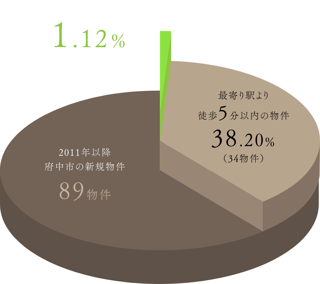 ※1.2011年以降の府中市の新築分譲マンション供給89物件の内、最寄り駅から徒歩5分以内かつ公園隣接物件を抽出。