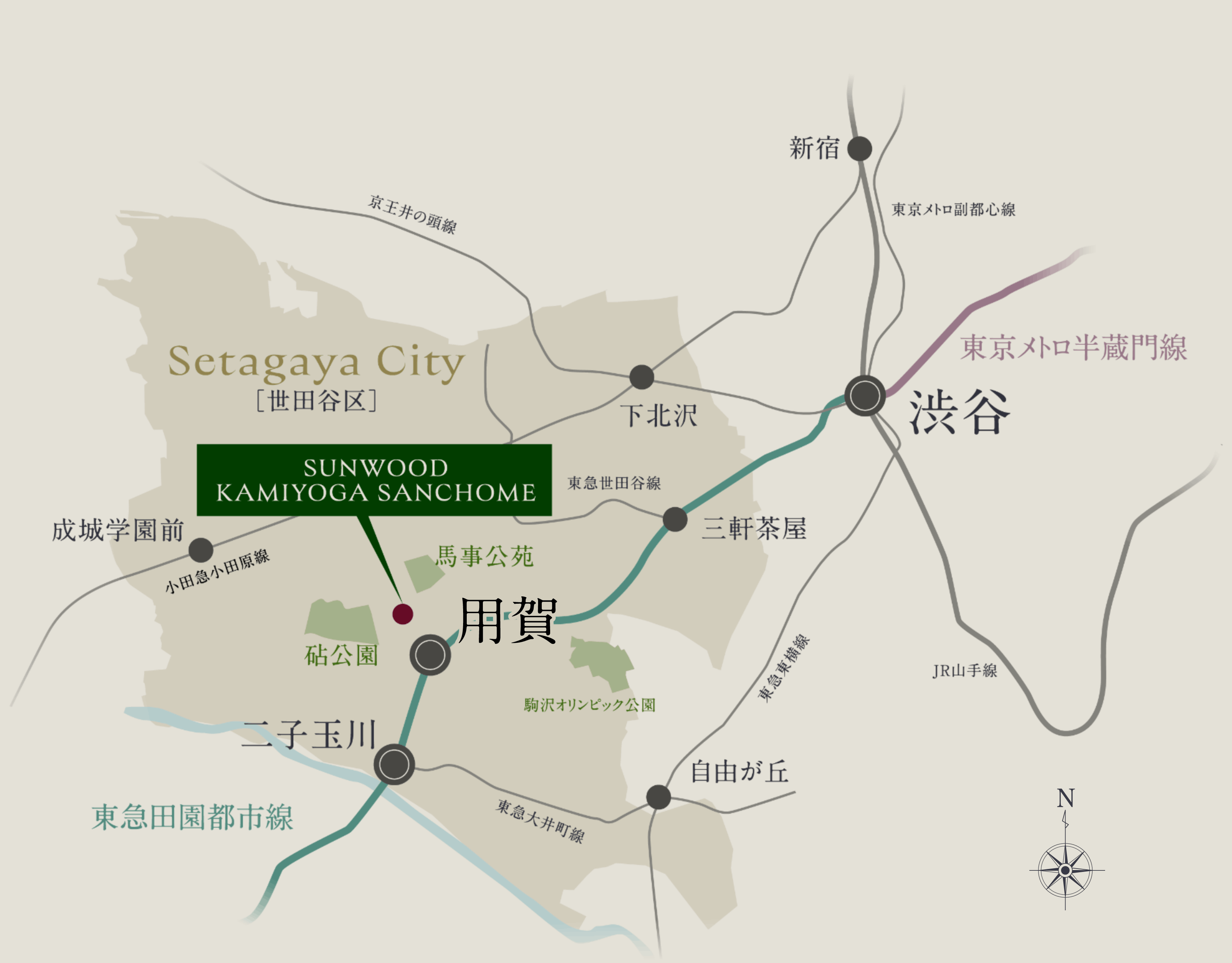 最寄り駅「用賀」駅から、東急田園都市線で「渋谷」駅へ直通。