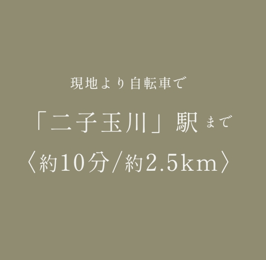 二子玉川生活圏の心地よさ。二子玉川エリアは、自転車でもアクセスできる身近な距離感。グルメやエンターテインメントを愉しんだ後は、喧騒から離れた高台の地、上用賀へ。賑やかな街を使いこなしながら、帰る場所は心から安らげる邸宅地。その適度な距離が、心地よい世田谷ライフを叶えてくれる。