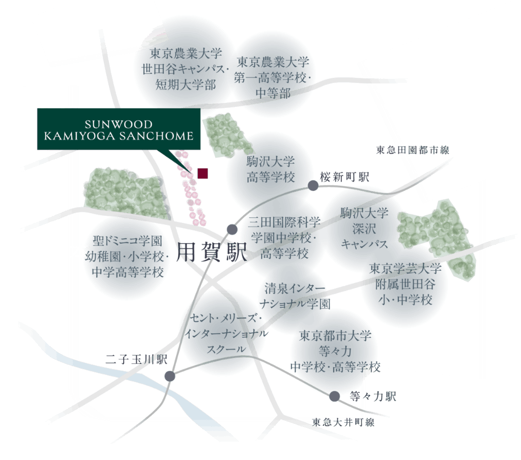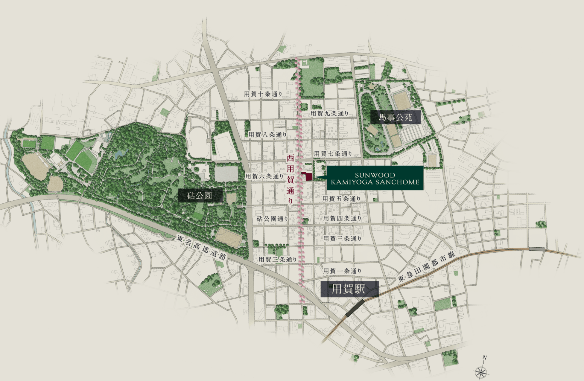 「砧公園」と「馬事公苑」という世田谷を代表する2つの広大な緑の間に位置する、