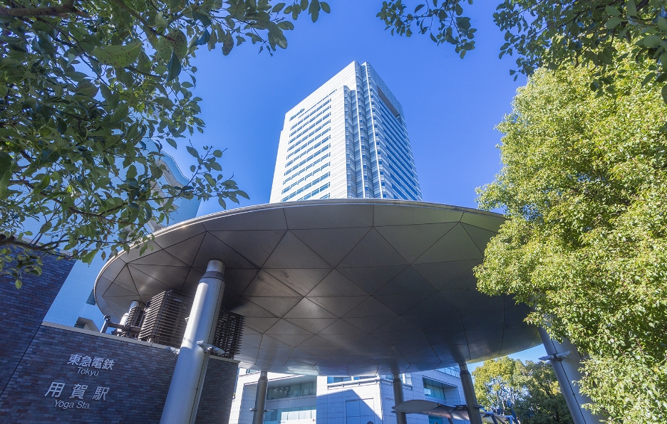 「用賀」駅に直結するのは、多彩なショップが揃うランドマーク「世田谷ビジネススクエア」。