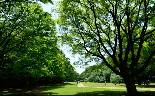 標高約37mの開放感も享受する武蔵野台地。