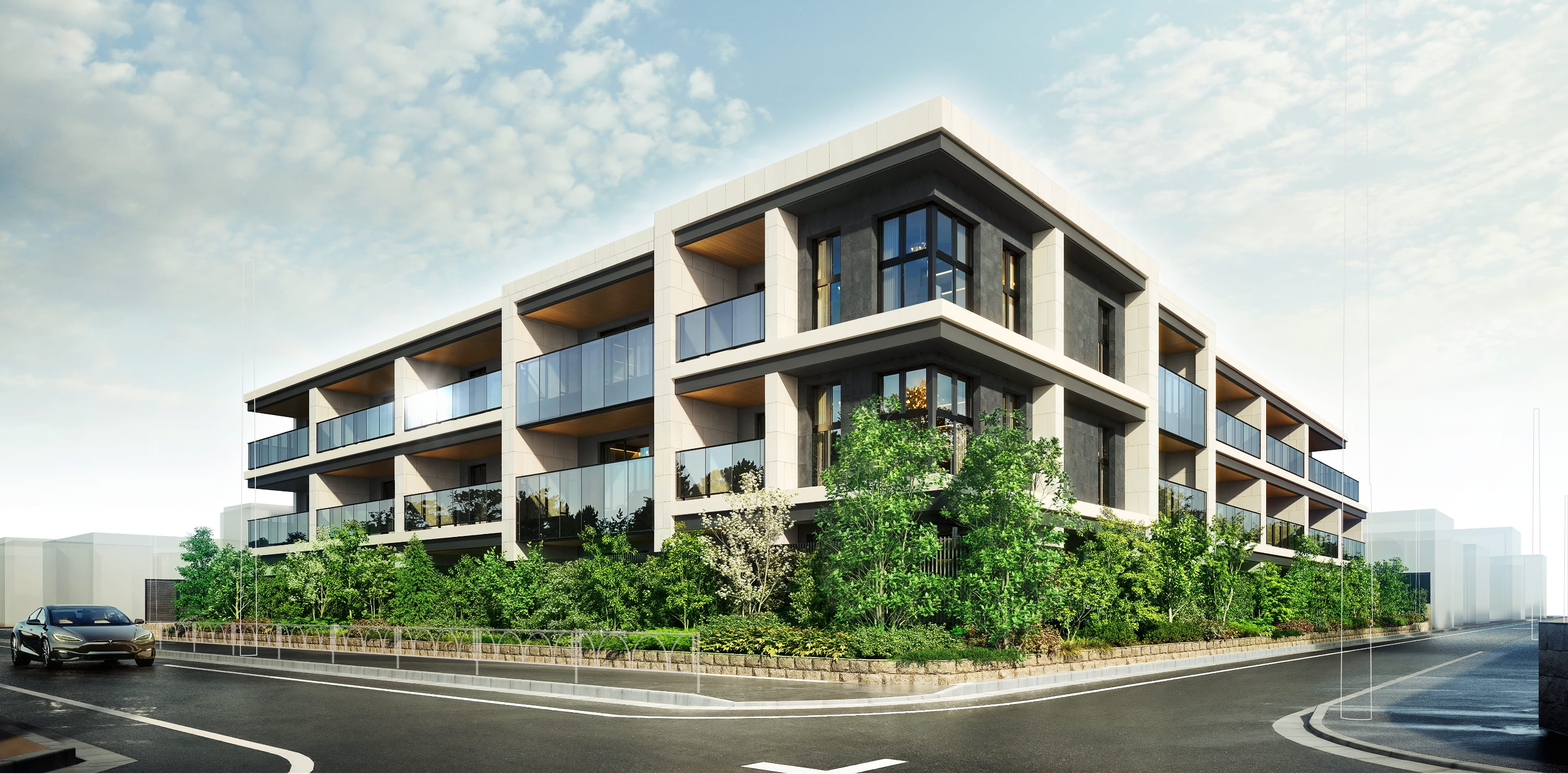 世田谷を象徴する緑に包まれた上用賀三丁目の風土と呼応し、安息を創出する「回廊設計 -Corridor Design-」。