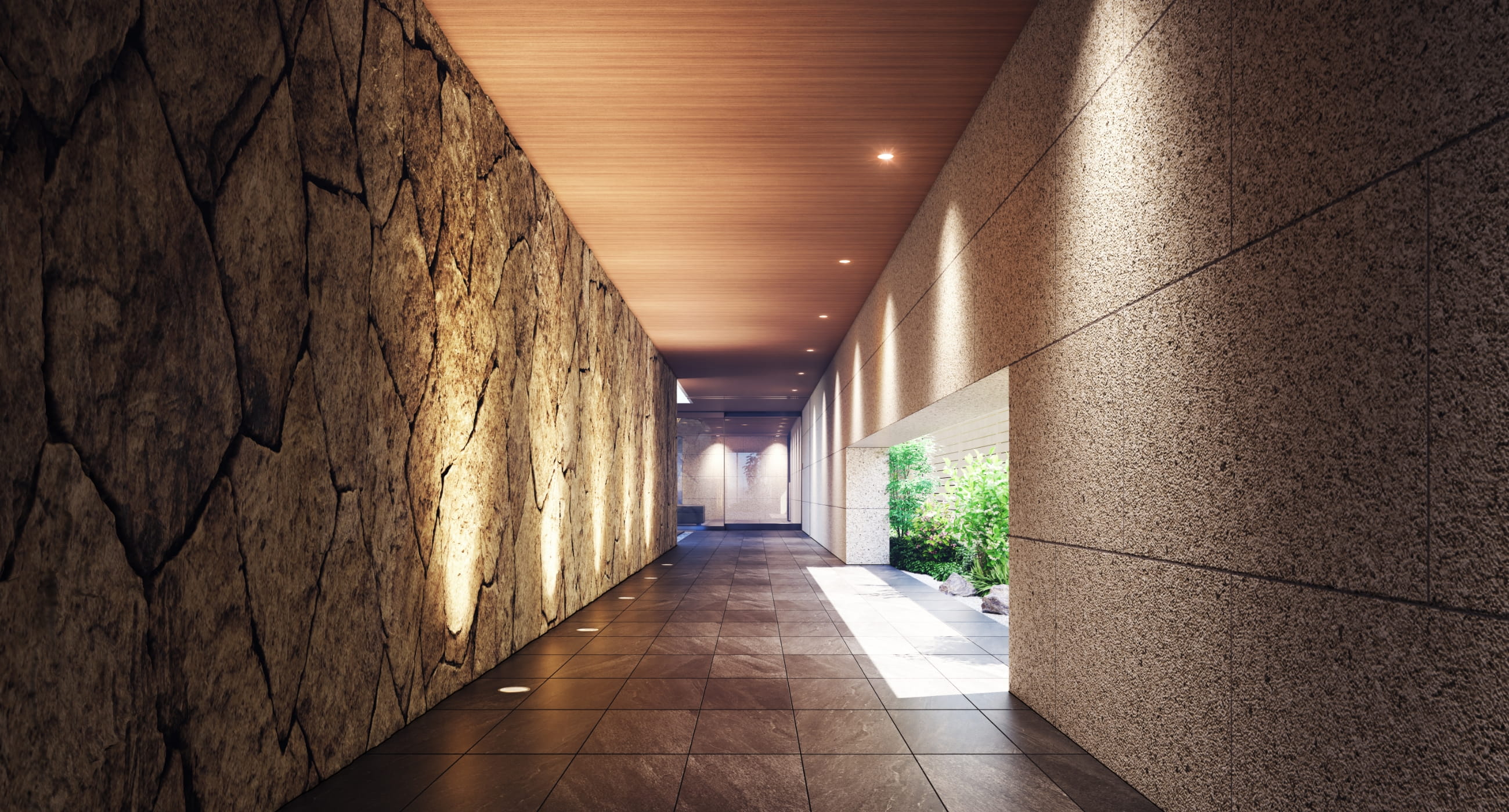 素材の陰影が導く、静謐なる回廊。