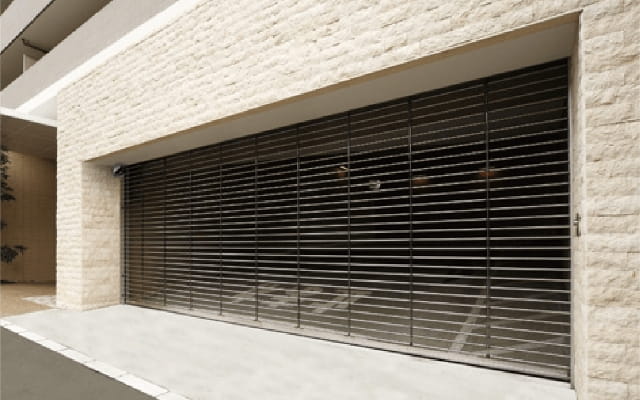 愛車を守り、私邸の防犯性を高める強固なセキュリティとして、駐車場・バイク置場の出入口には部外者の侵入を物理的に遮断するリモコン式のグリルシャッターゲートを設置。