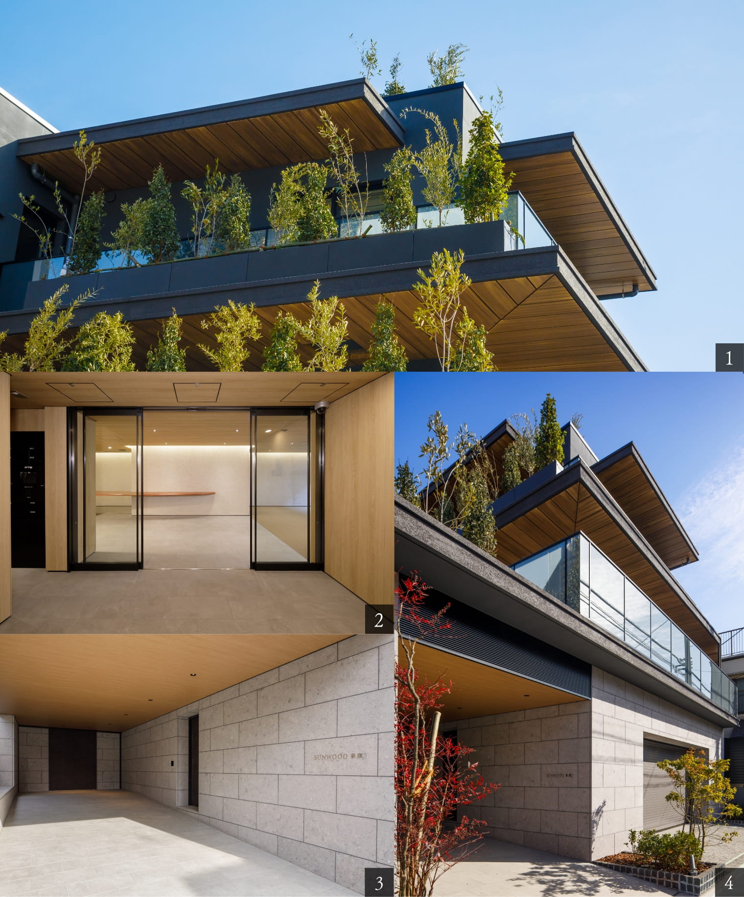 1.4.外観竣工写真 2.エントランスホール竣工写真 3.エントランス竣工写真