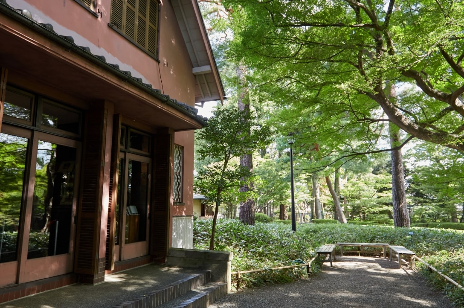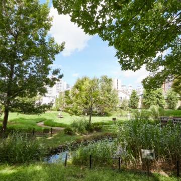 瑞々しい緑の潤いに心やすらぐ庭園で、かつての街の息吹を感じる穏やかな時を。