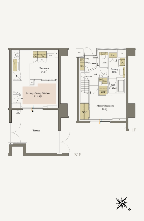 1DKから3LDK、専有面積30㎡台から90㎡を超え、さらにはメゾネットタイプの居室まで。